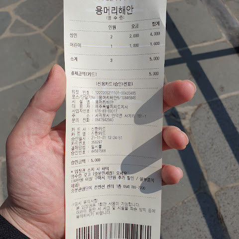 제주도 남쪽 여행 시 산방산과 함께 방문해야 하는 곳입니다. 30여분 산책하며 멋진 해안 절경을 배경으로 사진찍기 좋습니다. 입장료 2천원이고 입구와 출구가 달라 해안을 길게 반바퀴 정도 돌아보는 코스입니다. 밀물 때 입장이 불가하기 때문에 물때를 맞춰 가야합니다(전화문의 안됨, 검색 필요) 방문 시간에 사람이 몰리기 때문에 주차 공간이 좀 부족합니다. 매표소 진입로에 기념품 가게와 화장실, 조그만 바이킹 놀이기구가 있네요.
