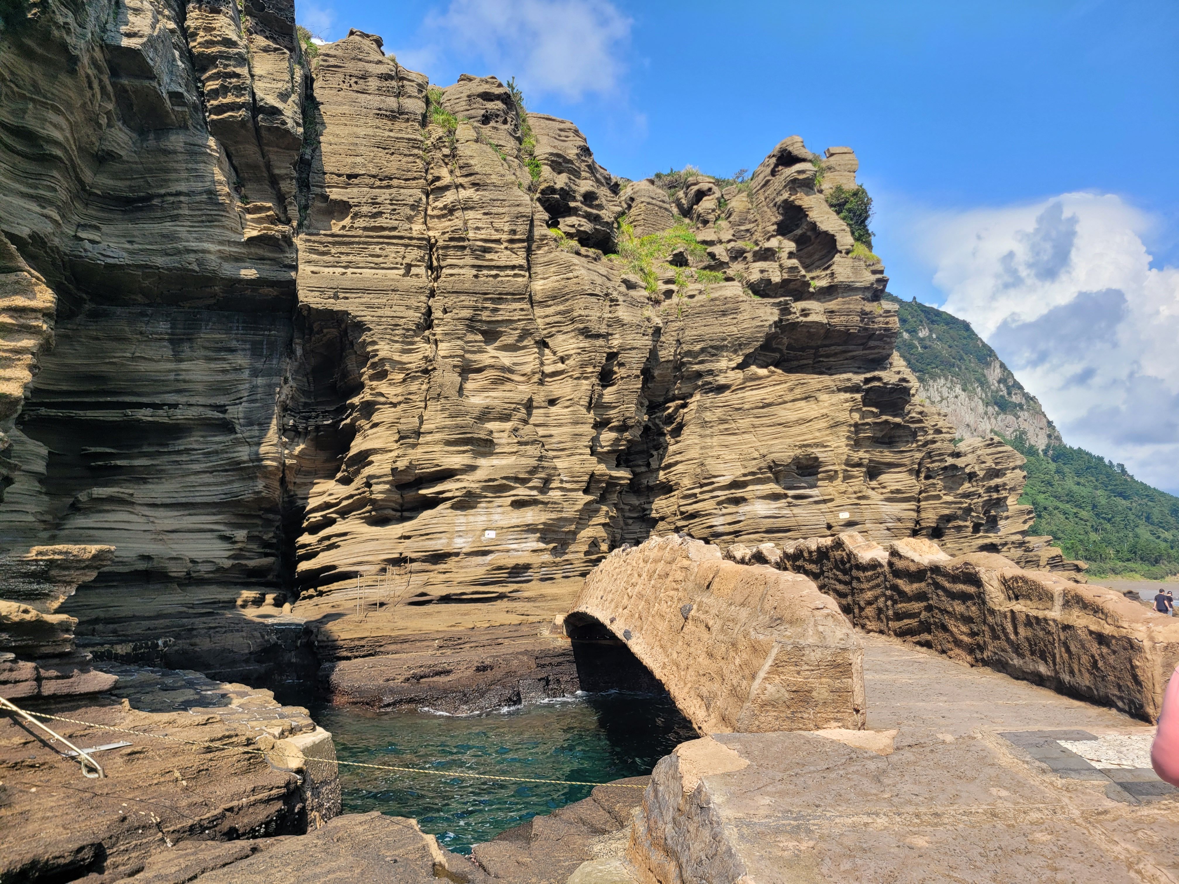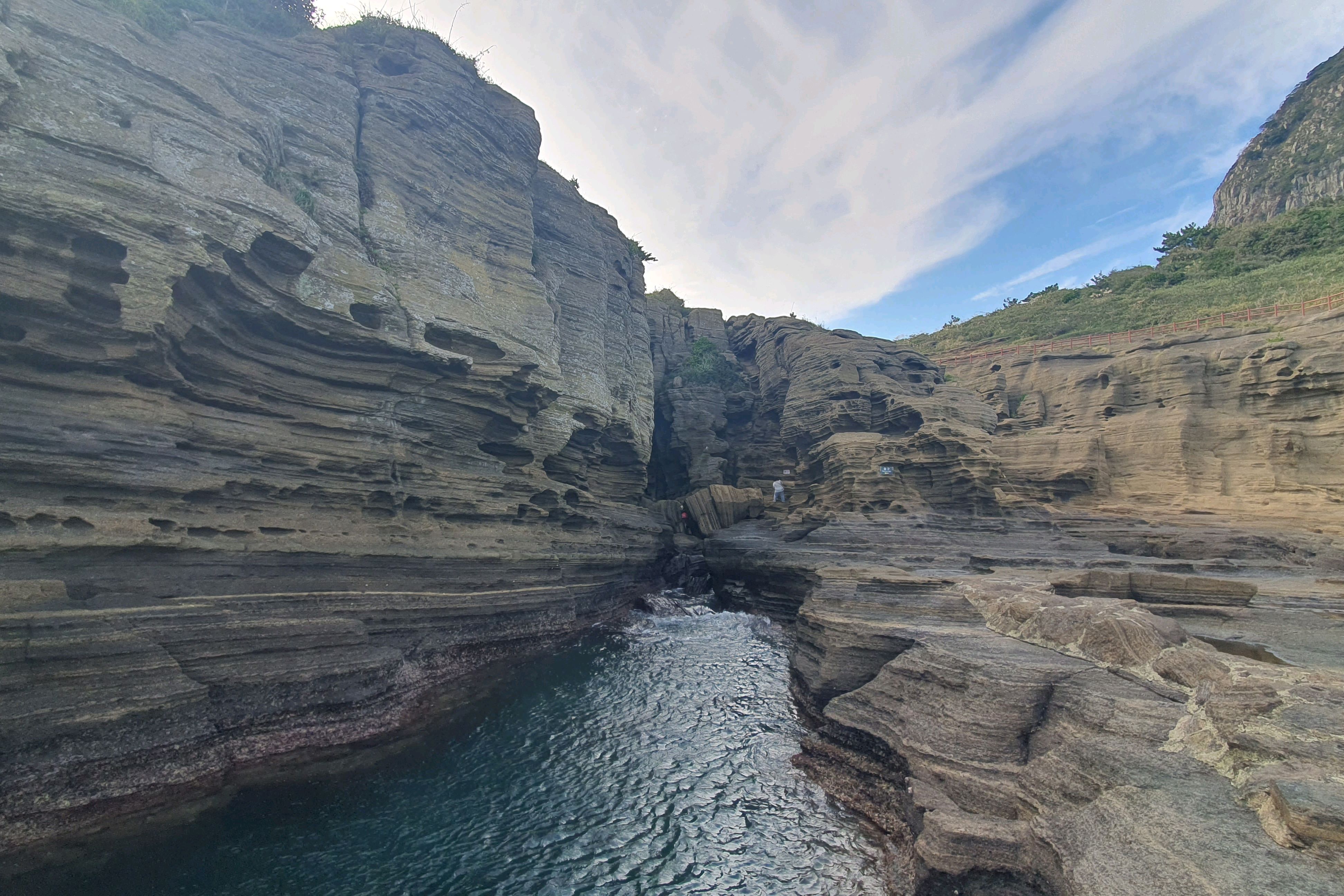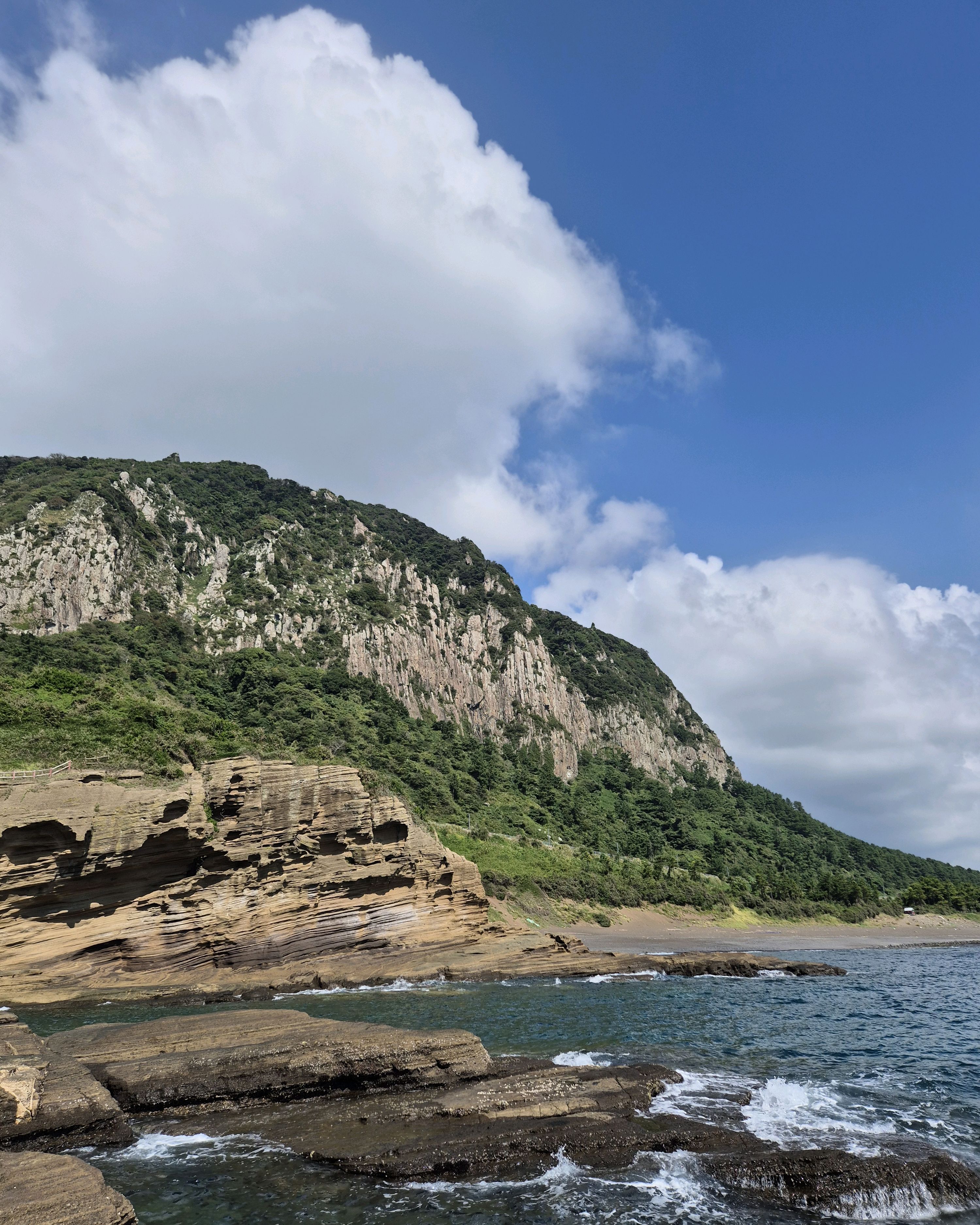 제가 가본 곳 중 가장 아름다운 곳 중 하나였어요. 대자연이 이곳에서는 그 어떤 것보다 아름다웠어요. 제주도는 자연의 아름다움으로 가득하지만, 이 곳은 정말 감탄스러웠어요. 거기서 사진을 100장도 넘게 찍은 것 같아요. 마지막에는 가파른 바위 계단을 올라가야 하지만, 못 가더라도 왔던 길로 돌아갈 수 있어요.