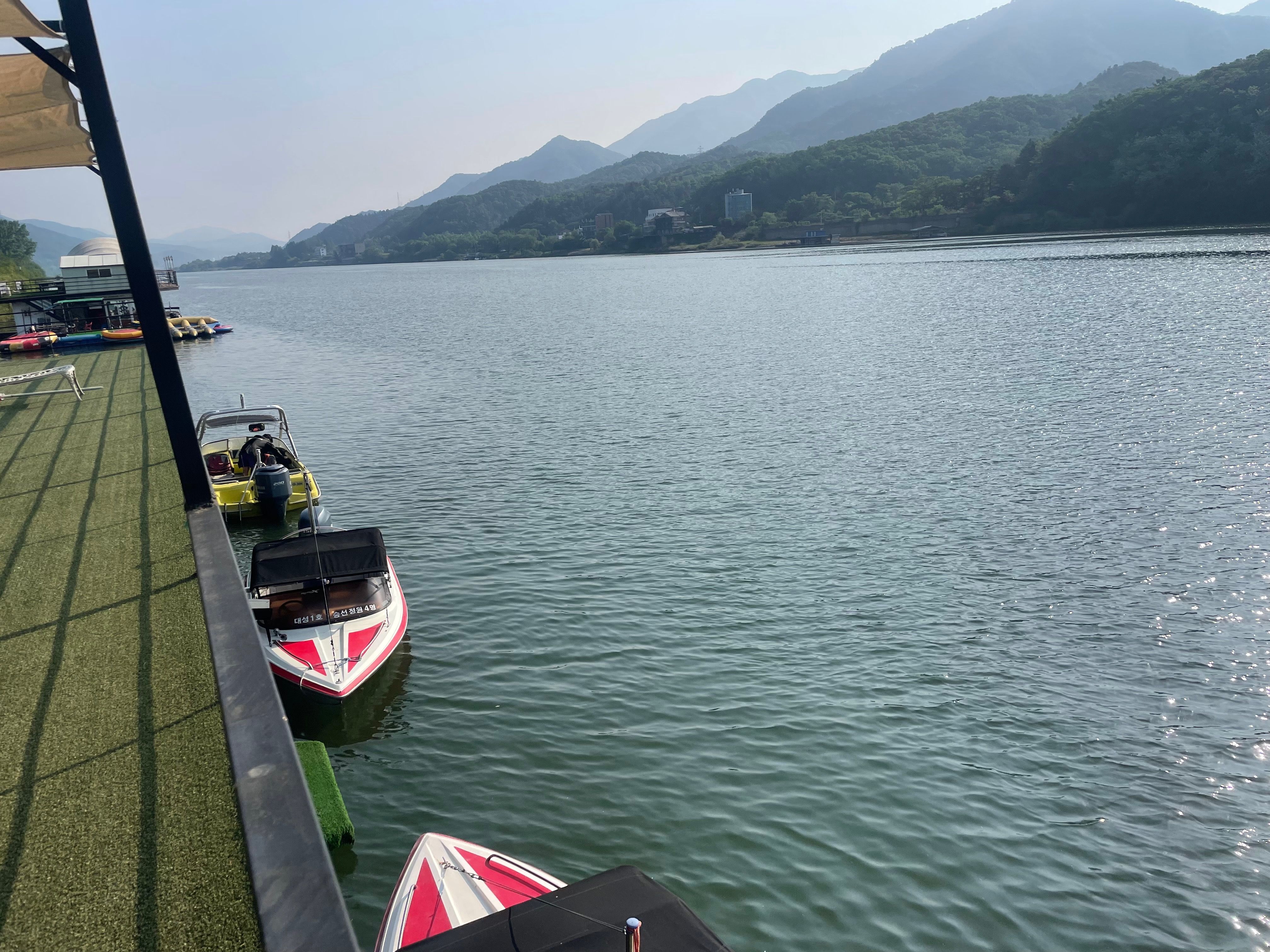 여행은 가고 싶고, 시간은 애매하고해서 그나마 가까운 가평으로 왔는데, 물도 맑고 바람도 시원해서 너무 좋아요. 대성수상레저의 북한강 보트투어를 마지막으로 집에 가는데, 강에서 보는 여름 노을 너무 예쁘고요.. 가족여행 마지막 코스로 강추드립니다ㅎㅎ