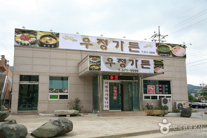 우정 가든의 다슬기 해장국은 다른 곳과는 약간 다르다. 보통 된장을 풀고 부추를 듬뿍 넣어 다슬기 국을 끓이지만, 이곳은 일반 소고기 해장국처럼 대파와 약간의 부추 등의 야채에 김치를 넣어 끊인다. 소고기 대신 다슬기가 들어가 약간은 얼큰한 맛이 돌면서도 뒷맛이 시원하다. 깍두기와 밑반찬도 해장국의 맛을 돋운다.