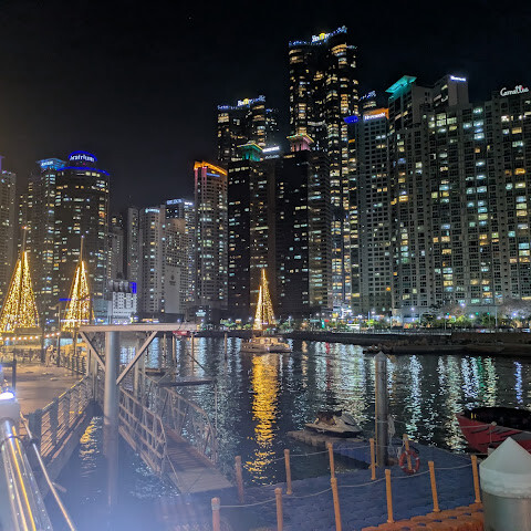 부산 가족여행 핫플레이스 코스중 더베이101 입니다. 특히 야간에 멋진 야경과 보트 구경 추억의 사진도 촬영하고 기분좋은 하루 보내고 왔습니다 저녁 바닷바람이 좀 있어 건물 바람막 설치 한듯합니다.🤗🔆
