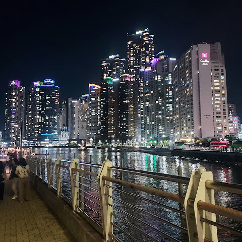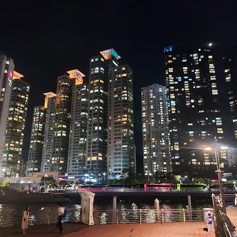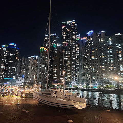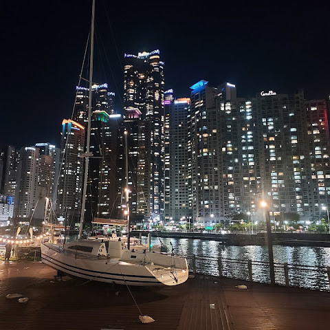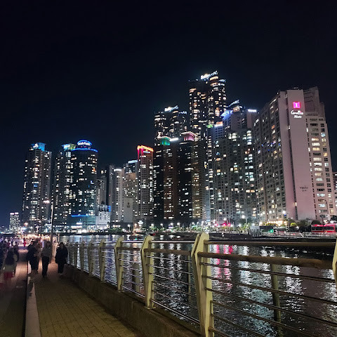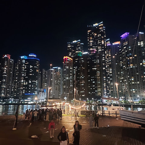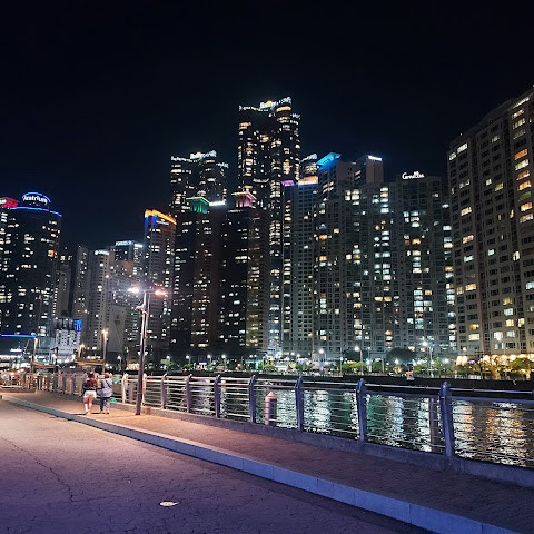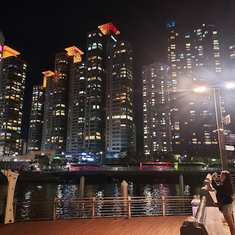 해운대 해수욕장 바로 옆에 위치한 숨은 보석 같은 이곳은 저희 가이드가 추천하는 곳입니다. 해변과는 완전히 다른 풍경을 자랑합니다. 주변 건물들과 어우러진 이곳에서 바라보는 야경은 사진 찍기에 더할 나위 없이 좋습니다. 근처에는 보트 타기도 있습니다.