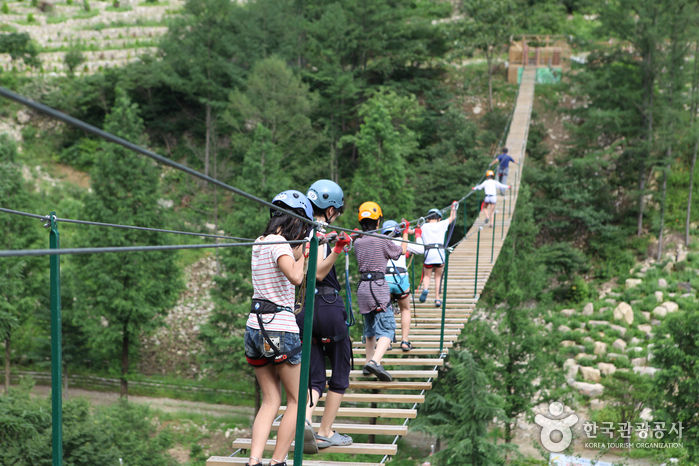 강원도 인제는 레포츠의 천국이다. 내린천 리프팅은 고전에 속한다. 국내 최초로 조성된 스캐드다이빙을 비롯해 짚트랙, 번지점프 등 도전해볼 레포즈가 기다리고 있다. 인제 읍내에 들어서면 거대한 타워가 시선을 사로잡는다. 바로 50.2m에 이르는 스캐드 타워가 있는 인제나르샤파크다. 이곳에서 다양하고 엑티브한 레포츠를 즐길 수 있다