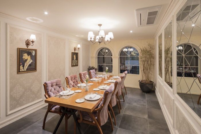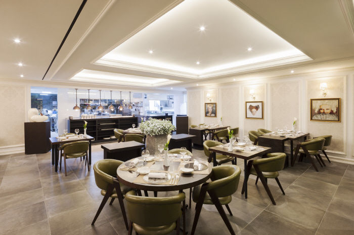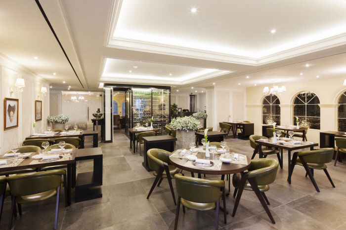 음식과 서비스는 프리미엄을 추구하는 것이 특징이며, 다양하게 구성한 코스 메뉴와 세계 각국의 명품와인을 보유하고 있다. 고객에게 음식이 서브되기 전에는 각 요리에 대한 간략한 설명을 적은 메뉴 노트를 건네고 여성 화장실에는 별도의 파우더룸을 만들어 향수, 핸드로션, 위생용품 등을 제공하고 있다.