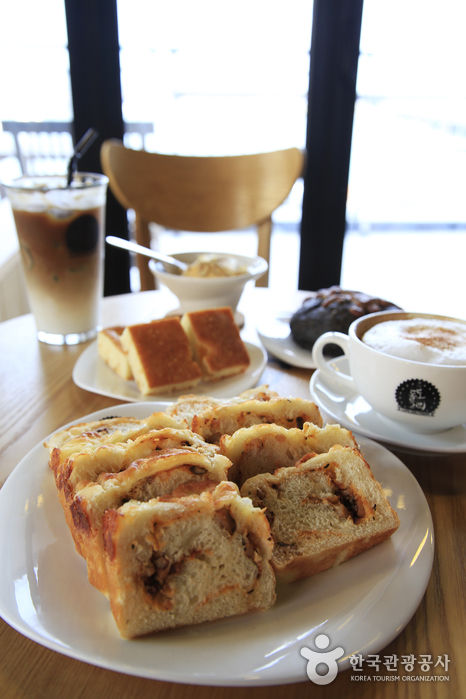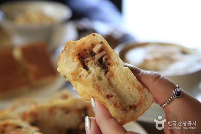 표선해비치해변, 표선 포구 바로 뒤편에 위치한 디저트와 족욕을 즐길 수 있는 돌토고리카페는 검은 현무암으로 만든 이색적인 족욕통과 직접 만드는 젤라또, 빵이 인기 있는 따뜻한 공간이다. 특히 이색적인 빵이 인기가 좋은데, 맛도 맛이지만 다른 베이커리에는 없는 이 집만의 독특함이 있기 때문이다. 오징어와 한치, 문어, 소라를 넣어 만든 해물빵은 돌토고리를 대표하는 인기 빵이다. 겉은 특별할 게 없지만 속에 가득 들어있는 해산물들이 여느 빵과는 다른 특별함을 만들어 준다. 폭신한 빵의 식감과 잘게 썰어 넣은 해산물이 꽤나 잘 어울린다.