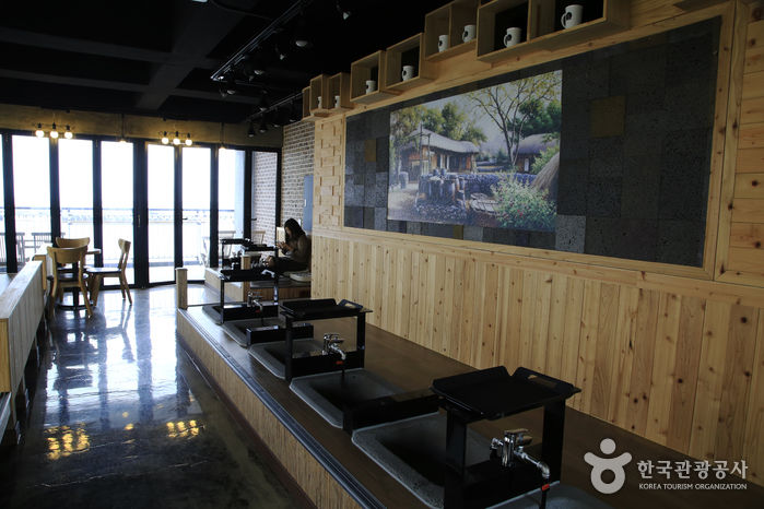 카페 2층은 족욕 체험장으로 꾸며져 있다. 디저트와 함께 족욕을 즐기고 싶다면 1층에서 미리 빵과 음료를 주문하면 족욕 테이블로 가져다준다. 개인 족욕 통마다 음료 등을 올려둘 수 있는 테이블이 있어 편하다.
