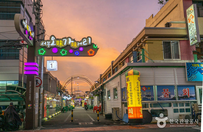 오미(味)가미(味)에서 유추할 수 있 듯, '오면서 먹고 가면서 먹는다'라는 뜻으로 다양한 국적의 음식과 더불어 독특한 메뉴들도 함께 즐길 수 있다. 가게명도 상당히 독특하고 취급하고 있는 음식이나 상품 또한 지역내 그 어디에서도 찾아보기 힘들기에 기존 먹자거리에서 식상함을 느낀 이들의 발길이 이어져 빠르게 사람들의 입소문을 타고 있다. 50여개의 음식점뿐만 아니라, 공방, 악세사리점, 전통 시장 점포 등이 함께 어우러져 있기에 임으로 눈으로 즐길 수 있다.