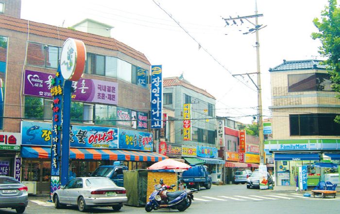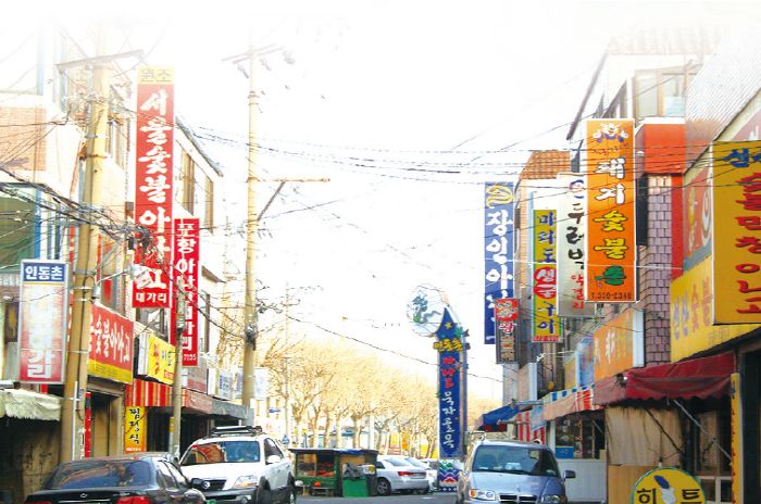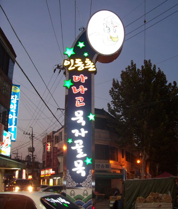 인동촌 아나고골목은 달성공원 담벼락에서 북비산네거리 쪽으로 150m에 이른다. 현재 20여 개의 식당이 새벽까지 손님맞이에 여념이 없다. 아나고는 회로 먹어도 좋고, 구워 먹어도 그 맛이 일품이다. 술안주로도 제격이며, 양념장에 버무려 시원한 물김치와 함께 먹기도 한다. 단백질과 아미노산이 풍부해 여름철 기력회복에 좋다.