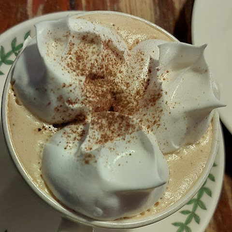 비엔나 커피 5개 드립니다. 맛이 너무 좋아서 이 커피로 디저트를 주문할 필요가 없습니다. 오렌지잼을 얹은 크림치즈 케이크는 비엔나 커피와 안 어울린다. 케이크 맛이 나한테는 안 맞았다. 전통 동양차는 달고 특별한 맛이 나지 않습니다. 처음에는 줄이 너무 길어서 두 번째로 방문했는데 운이 좋게도 시도해 볼 기회가 생겼습니다.