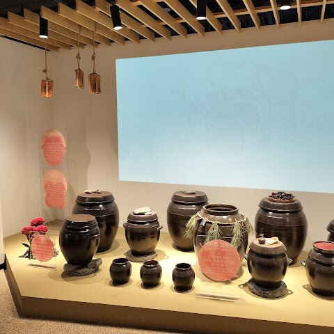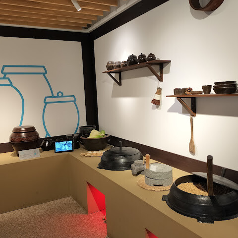 갤러리는 뒤쪽에 있어요. 프런트 데스크를 지나 한국 음식과 음료를 자세히 설명하는 다른 전시들을 둘러볼 수 있어요. 모든 전시가 매우 유익하고 잘 구성되어 있어요.
