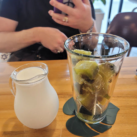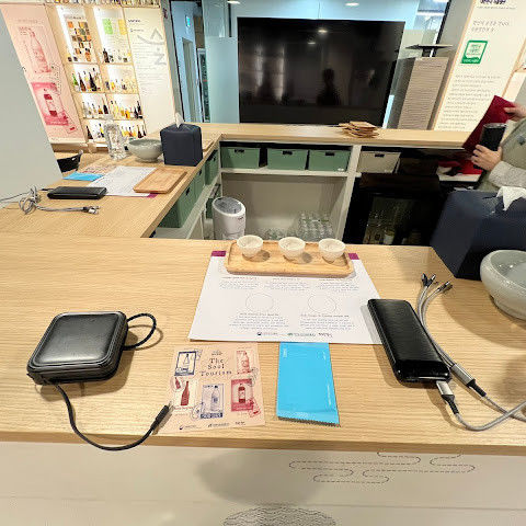 아내와 저는 처남이 소주에 대해 강의하는 친구를 만나러 이곳에 들렀습니다. 처남이 친구를 만나는 동안, 아내와 저는 카페에서 시원한 꽃차와 말차 라떼를 즐겼습니다. 2025년 6월의 더위를 피해 편안하게 휴식을 취하기에 아주 편안한 곳이었습니다.