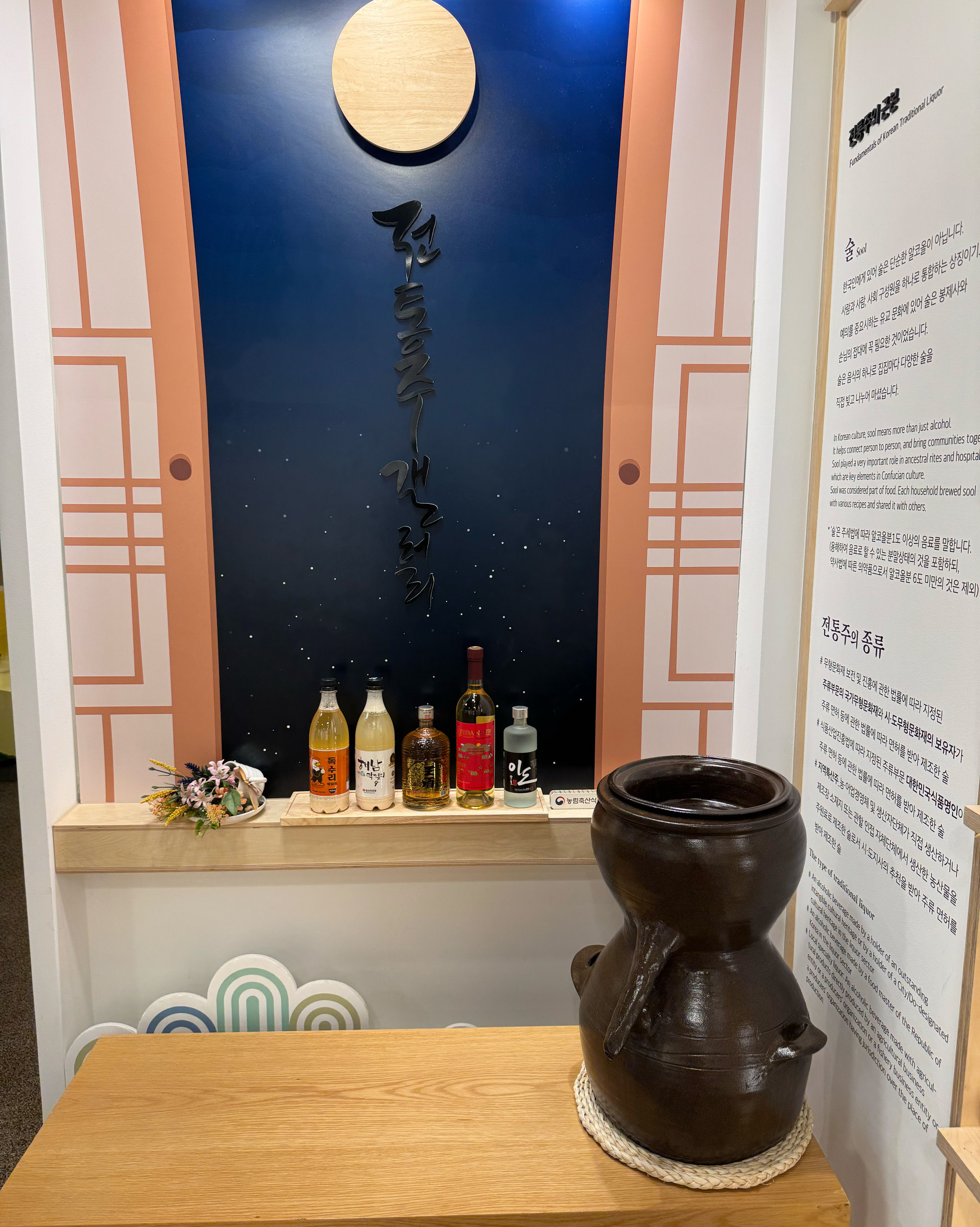 갤러리는 뒤쪽에 있어요. 프런트 데스크를 지나 한국 음식과 음료를 자세히 설명하는 다른 전시들을 둘러볼 수 있어요. 모든 전시가 매우 유익하고 잘 구성되어 있어요.