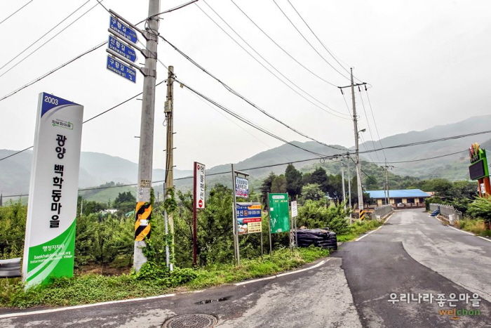 예로부터 따스하게 빛나는 햇살이라는 뜻을 지니고 있는 광양시에 위치한 백학동마을은 백운산과 섬진강 사이를 두고 경남 하동군과 이웃한 고장이다. 백학동마을은 곶감, 고사리, 매실, 단감, 고로쇠와 함께 밤, 두릅, 초피, 토란대, 능이버섯, 도토리가 유명하며, 펜션 및 캠핑장 시설이 갖추어져 있어 백운산과 계곡을 찾아오는 관광객들이 캠핑을 위해 주로 찾고 있다.