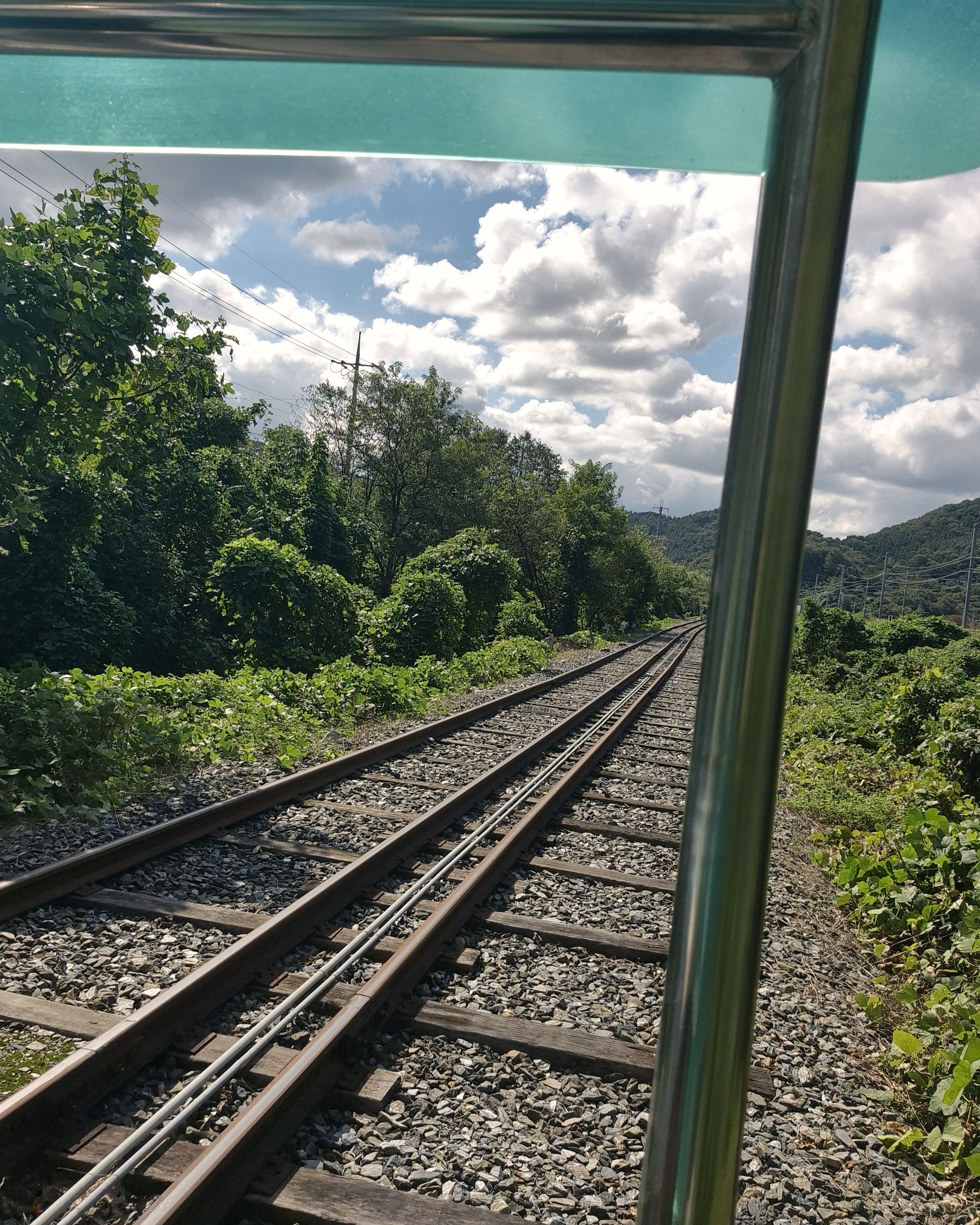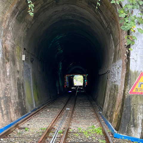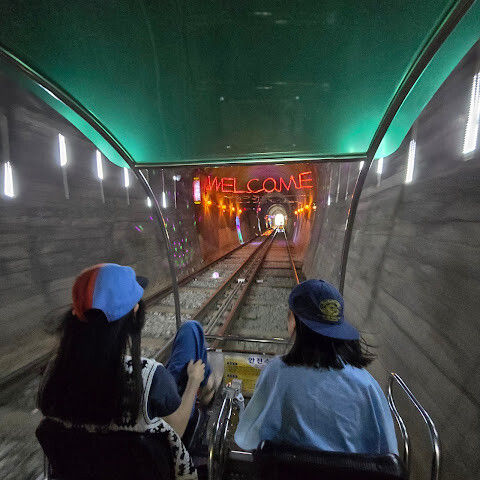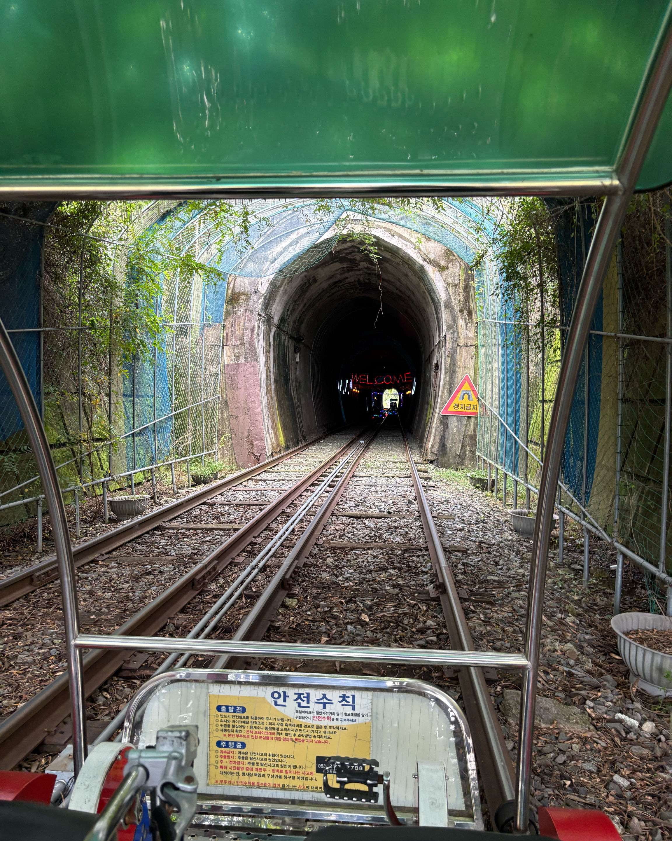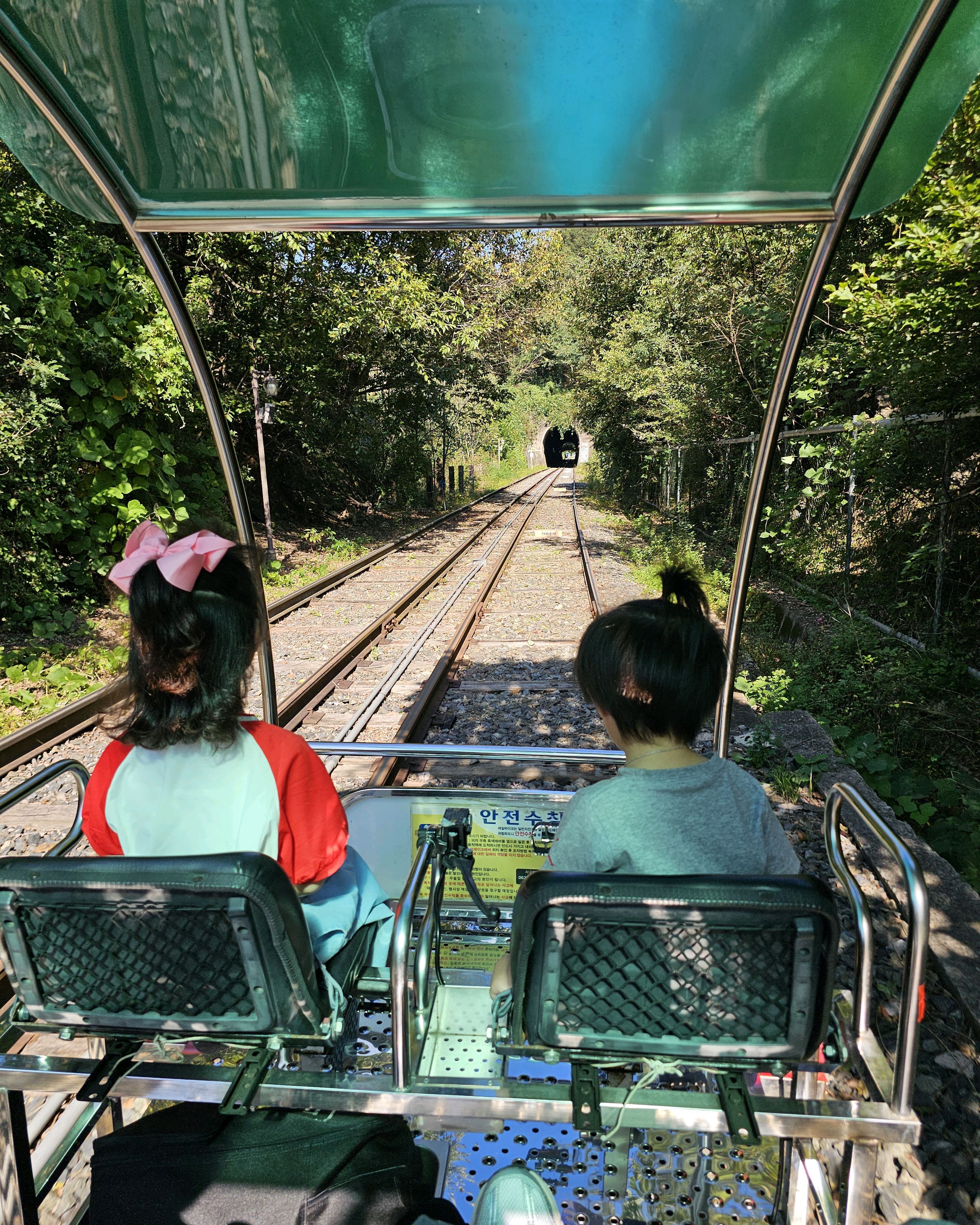 레일동안 볼게 많고 중간중간 터널이 있어 덥기만 하지 않아요.내리막 길은 속도가 빨라 재미있어요.