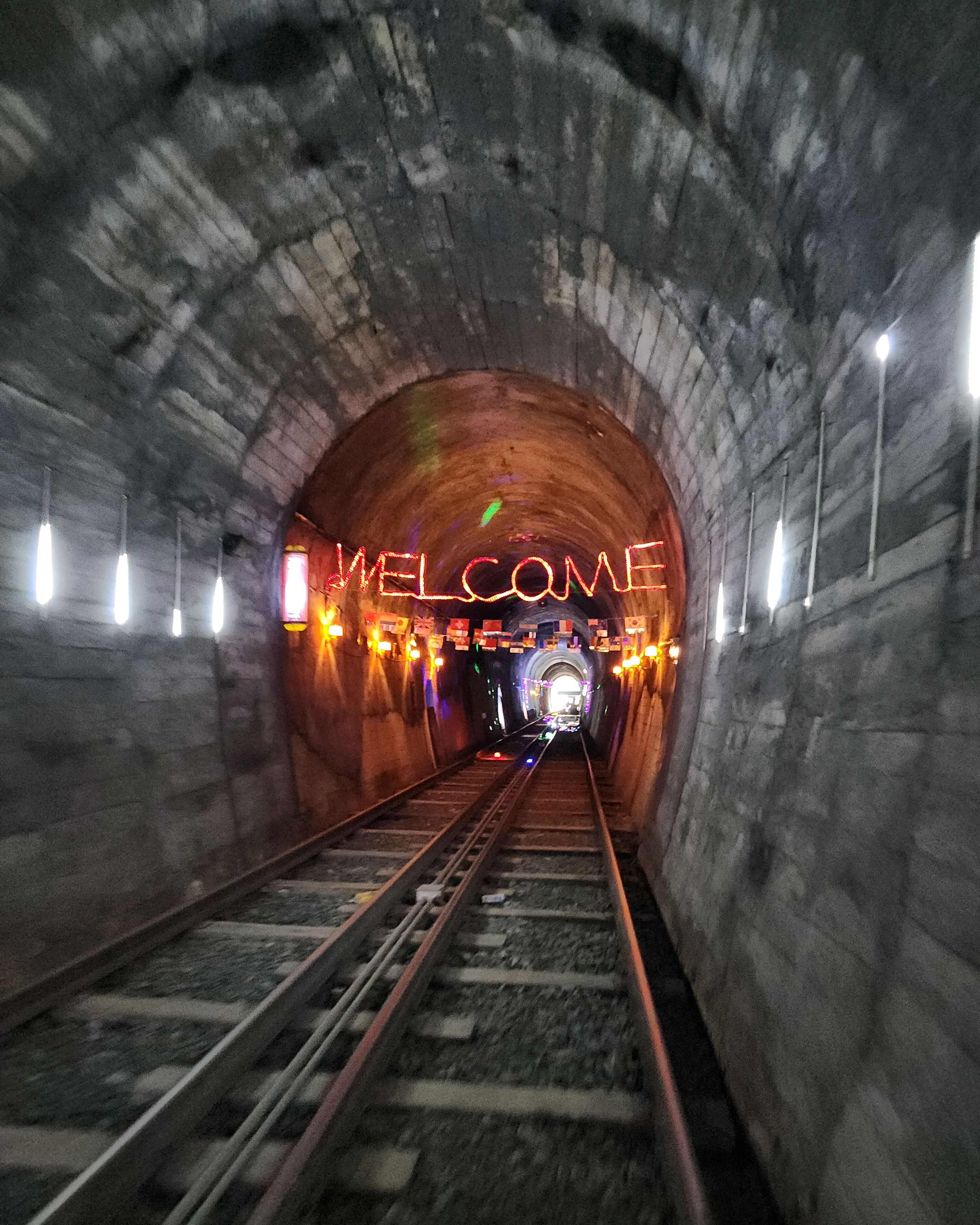 살짝 오르막내리막이긴 해도 중간중간 종 칠 수도 있고 가족단위 레일바이크타기 좋습니다. 터널안에 꾸며놓은 부분은 좀 올드한 감은 있네요.