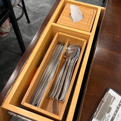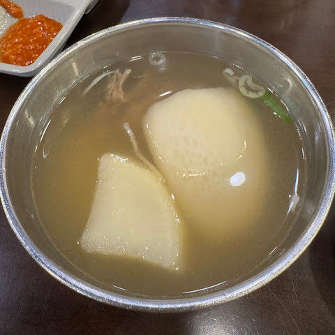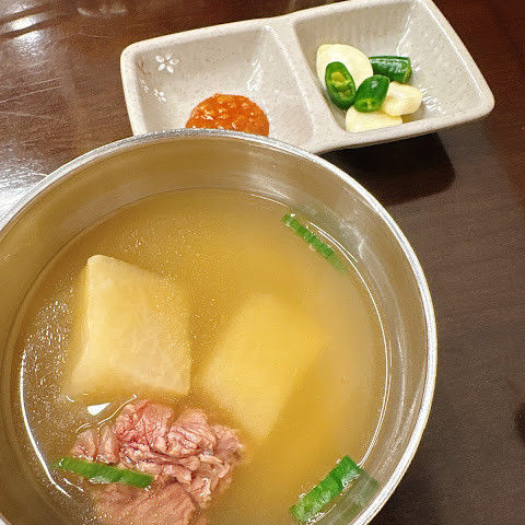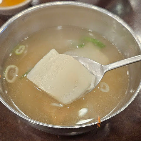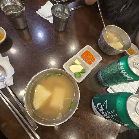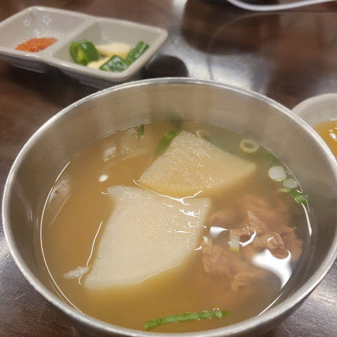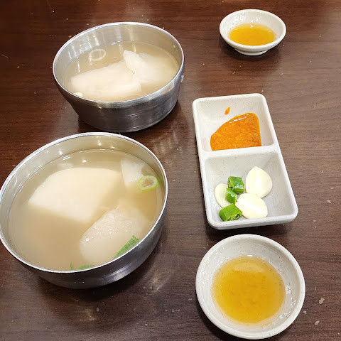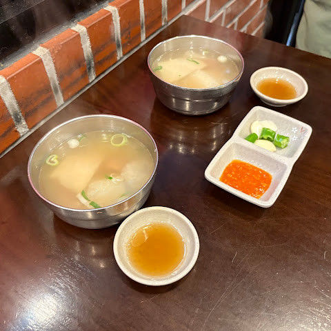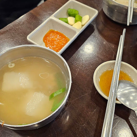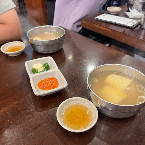 이 레스토랑은 정말 잘 운영됩니다. 전화했을 때, 따뜻한 국물과 반찬이 테이블 위에 차려져 우리를 반겨줍니다.
