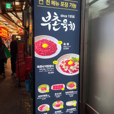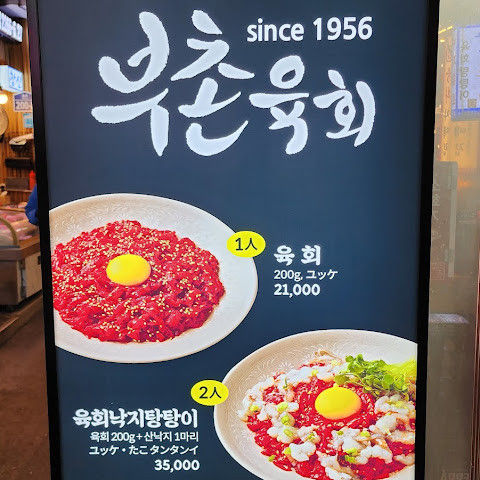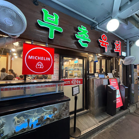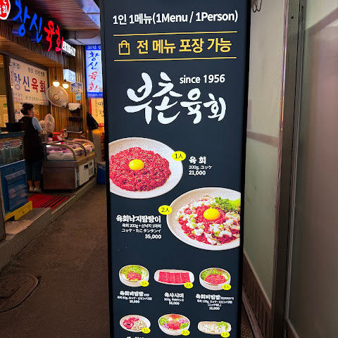 서울 종로구 광장시장 내에 위치한 부촌육회 본점은 사시미 소고기로 유명한 지역 특산 식당입니다. 식당은 작고 좌석이 협소하지만 테이블 회전이 빠릅니다. 이곳의 대표 메뉴인 사시미 소고기는 신선한 소고기를 손으로 직접 찢어 부드럽고 섬세한 식감을 자랑합니다. 참기름과 참깨로 양념하여 부드럽고 풍부한 맛을 내며, 날달걀 노른자를 넣어 더욱 풍미를 더했습니다. 일부 메뉴는 달콤하고 바삭한 식감을 위해 잘게 썬 배와 함께 제공됩니다.
