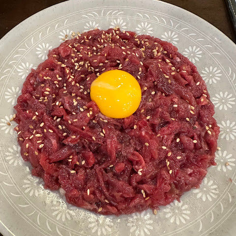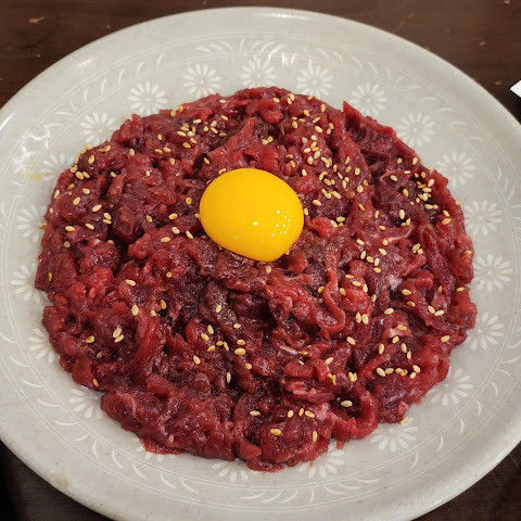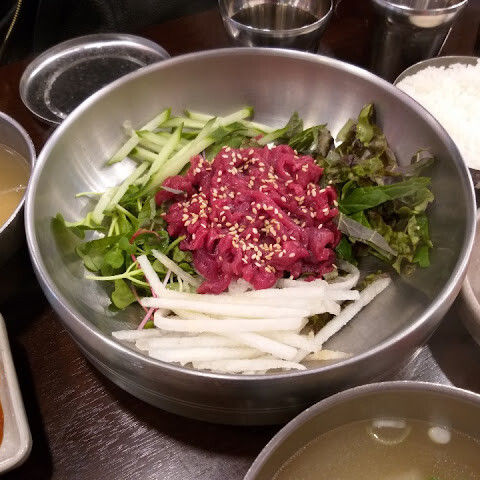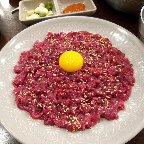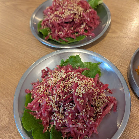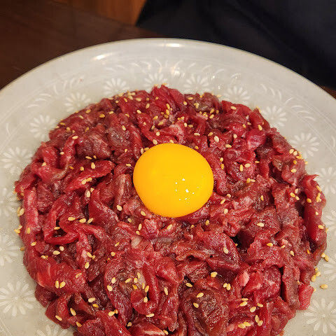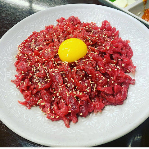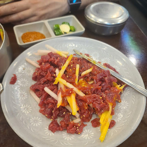 여기 육회는 정말 맛있었어요. 정말 부드럽고 맛있었어요.