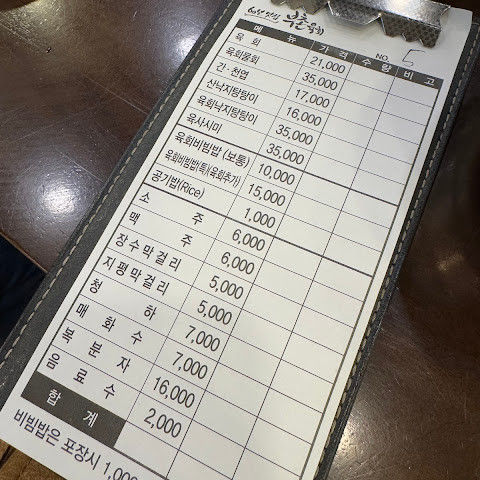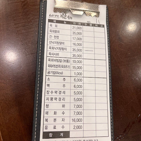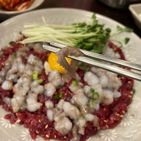 명성이 손님을 만들기도 하지만 이곳은 정말 대단한 맛집입니다. 이때까지 먹어본 육회 중 가장 신선하고 맛있었습니다.