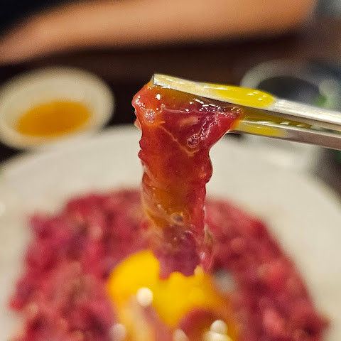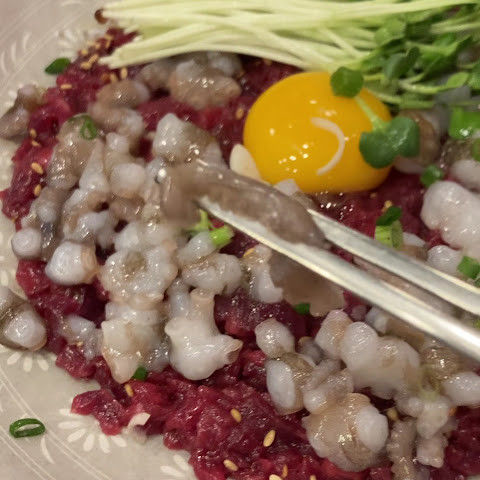 고기는 녹는 것처럼 부드럽고 달걀 노른자와 섞으면 부드러움이 업 🥚💕