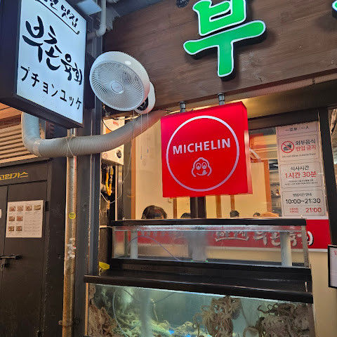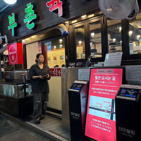 화요일 오후 1시에 갔는데 5분도 안 기다렸어요. 가격 대비 가성비가 정말 믿을 수 없을 정도예요. 미슐랭 가이드에 있는 것도 당연하고요. 늘 그렇듯 반찬도 푸짐하게 나와요.