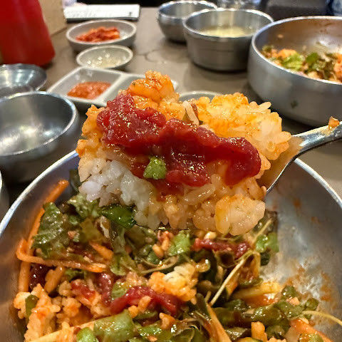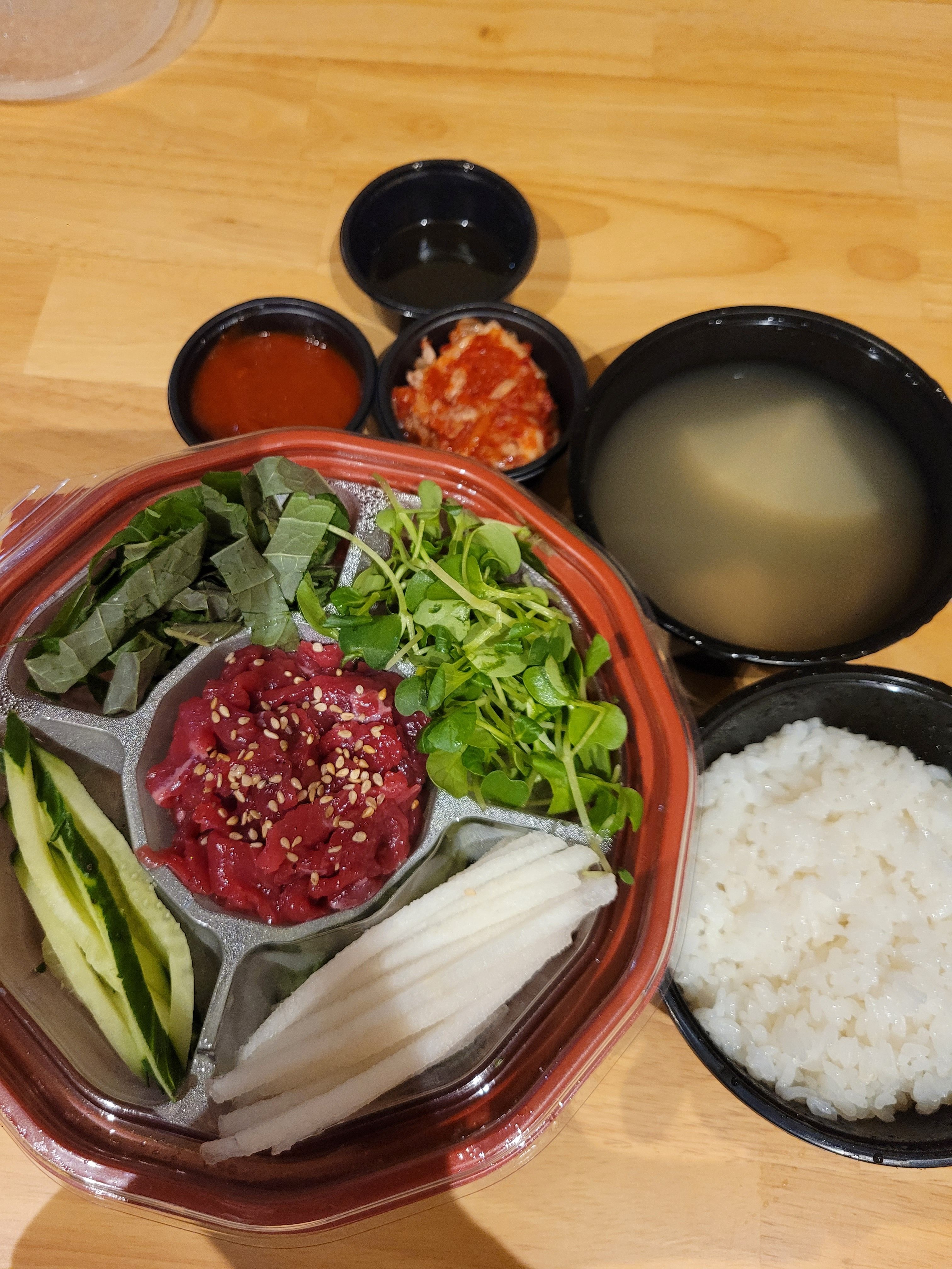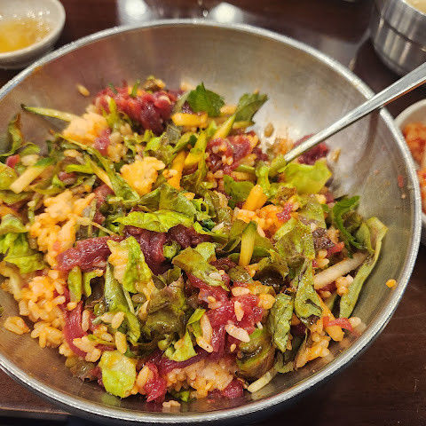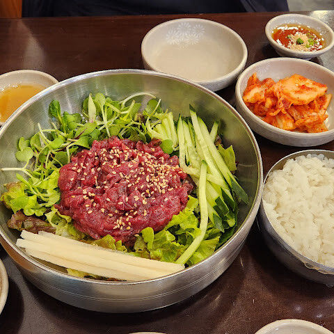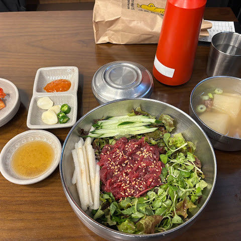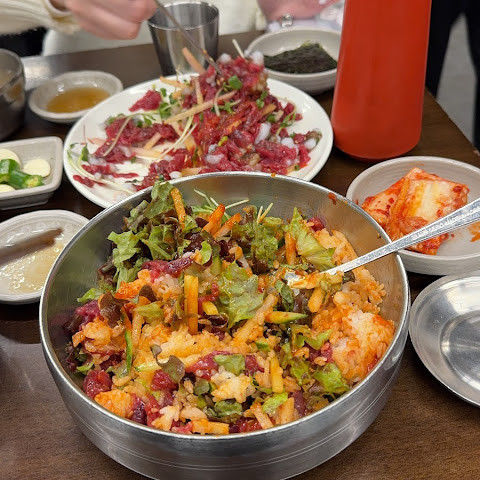 웨이팅있지만 회전율 빨라요. 육회도 육회비빔밥도 엄청 맛있어요! 입에 쫙쫙붙는 맛! 바쁜신데도 직원분들이 친절하세요 :)