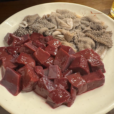 생 레버를 먹을 수 있는 가게라고 하는 것으로 방문. 신선도가 뛰어나 냄새도 전혀 없고, 트롯한 식감이 최고였습니다. 참기름과 소금의 심플한 양념이 소재의 장점을 돋보이게 하고, 일본에서는 좀처럼 맛볼 수 없는 귀중한 체험.