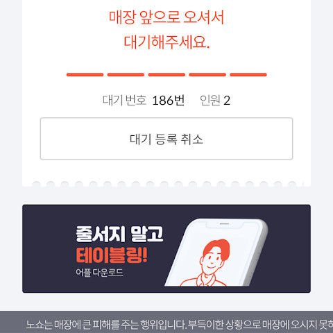 시스템에서 대기 시간을 확인할 수 있습니다. 생각보다 상당히 빨리 차례가 돌아왔습니다. 15분 정도밖에 기다리지 않았다고 생각합니다.
