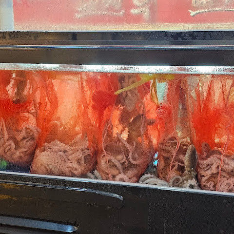 정말 신선하고 서비스도 빠릅니다. 소고기 타르타르는 아주 부드럽고 잘게 썰어져 있고 양념도 잘 배어 있습니다. 문어도 아주 신선하고 식감이 정말 끝내줍니다. 수프도 정말 맛있었고 주문하면 같이 나옵니다. 1인당 한 접시씩 주문해야 하는데 양이 많지는 않지만, 가기 전에 알아두세요. 저희 앞에 13팀이 있었는데, 테이블이 준비되기까지 15분밖에 기다리지 않았습니다. 대기 시스템은 아주 간단해서 이름과 연락처만 입력하면 테이블에서 실시간 업데이트를 볼 수 있어서 기다리는 동안 시장 곳곳을 둘러볼 수 있습니다!