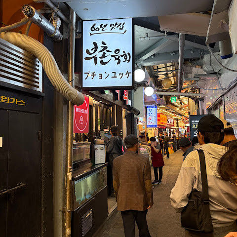 한국·광장시장(강장시장)에 있는【푸천유케】씨에 다녀 왔습니다🥩🇰🇷✨