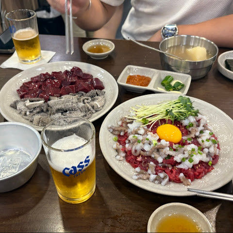 육회는 소스맛? 그게 진짜 중요한것같은데 창뭐시기 육회집에서 좀 아쉬웠던게 여기서 다 채워졌어요 ㅋㅋㅋ 근데 가격이 좀 높은 편이네요 ㅠ 자매육회도 맛있다던데 줄 짧은 쪽으로 가면 될듯용