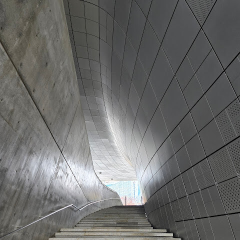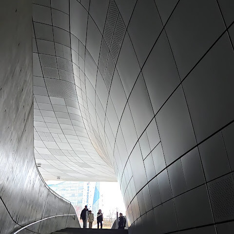 건물 안에서 뭘 하든 마치 거대한 우주선이나 흐르는 물을 연상시키는 유려한 건물 외관의 기하학 적 특징 만으로도 DDP는 매력 있다.