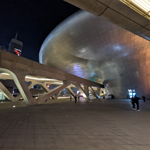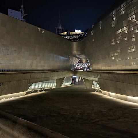 미래 건축을 좋아하는 사람으로서 DDP 방문은 정말 즐거운 경험이었습니다. 건물 자체는 멀리서도 눈에 띄고 상징적인 모습을 하고 있습니다. 누구나 한 번쯤은 "저건 분명 사람들이 온라인에 올리는 랜드마크일 거야"라고 생각하거나 언급할 수 있을 겁니다. 건물 내부에는 예술 설치물과 박물관이 있습니다. DDP의 모든 공간이 예술 그 자체입니다. 그곳에 있는 동안 단 한 순간도 지루할 틈이 없었습니다.