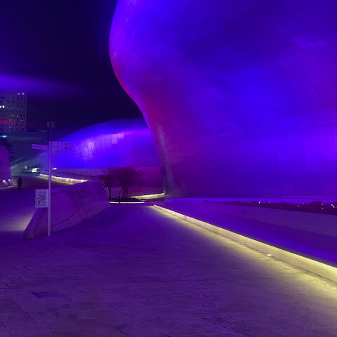 제게 있어 서울 여행의 하이라이트입니다! 복합 시설의 디자인은 믿을 수 없을 정도로 아름답고 다채롭습니다. 자하 하디드는 건축의 천재였죠!