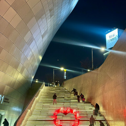 미래 건축을 좋아하는 사람으로서 DDP 방문은 정말 즐거운 경험이었습니다. 건물 자체는 멀리서도 눈에 띄고 상징적인 모습을 하고 있습니다. 누구나 한 번쯤은 "저건 분명 사람들이 온라인에 올리는 랜드마크일 거야"라고 생각하거나 언급할 수 있을 겁니다. 건물 내부에는 예술 설치물과 박물관이 있습니다. DDP의 모든 공간이 예술 그 자체입니다. 저는 그곳에 있는 동안 단 한 순간도 지루함을 느끼지 않았습니다.