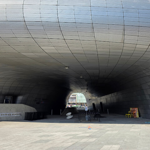 미래지향적 건축을 좋아하는 사람으로서 DDP 방문은 정말 즐거웠습니다. 건물 자체는 멀리서도 눈에 띄고 상징적입니다. 누구나 한 번쯤은 "저건 분명 사람들이 온라인에 올리는 랜드마크일 거야"라고 생각하거나 언급할 수 있을 겁니다. 건물 내부에는 예술 설치물과 박물관이 있습니다. DDP의 모든 곳이 예술 작품입니다. 그곳에 있는 동안 절대 지루하지 않았습니다.