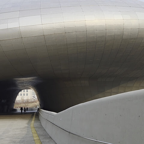 건물 안에서 뭘 하든 마치 거대한 우주선이나 흐르는 물을 연상시키는 유려한 건물 외관의 기하학 적 특징 만으로도 DDP는 매력 있다.