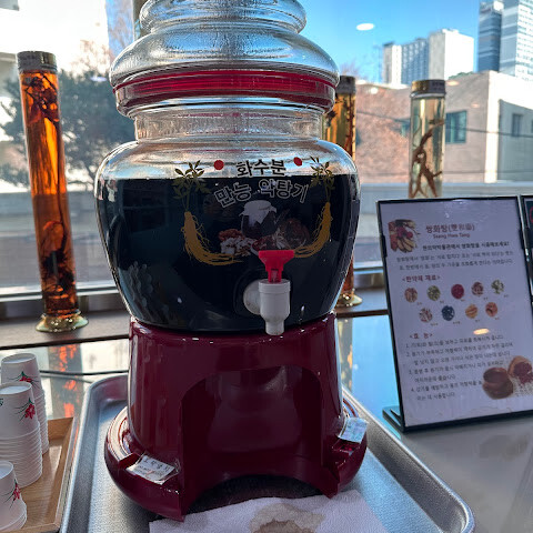 또한, 대만 사우인과 비슷한 맛의 쌍화탕을 근처에서 무료로 즐기실 수 있습니다. 홍삼 쿠키도 판매하며, 모두 합리적인 가격입니다.