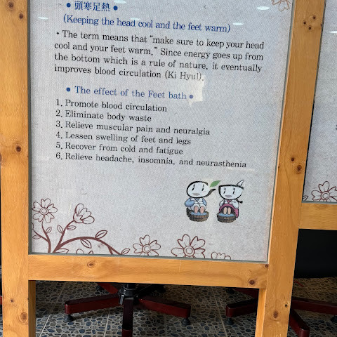 2층에는 1인당 5,000엔에 약용 족욕탕에서 발을 편안하게 쉴 수 있습니다. 카운터에서 결제 후 일회용 타월을 받고, 농축 약탕을 넣는 곳으로 안내됩니다. 이 기계는 미세 진동을 사용하며, 약탕은 약 20분 정도 지속됩니다.