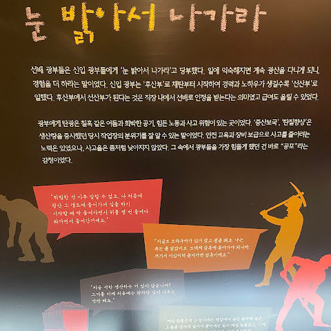 처음 가봤는데 너무 잘 되있고 신기하며 과거의 고생스러움이 그대로 생생하게 보여주니 너무유익한 시간이었어요 그리고 지하갱도 체험은 오싹한 한기에 실제크기에 놀라웠고 아주 후회없는 견학이 되었어요 추천 드리니 꼬옥 가보시면 대단히 유익합니다