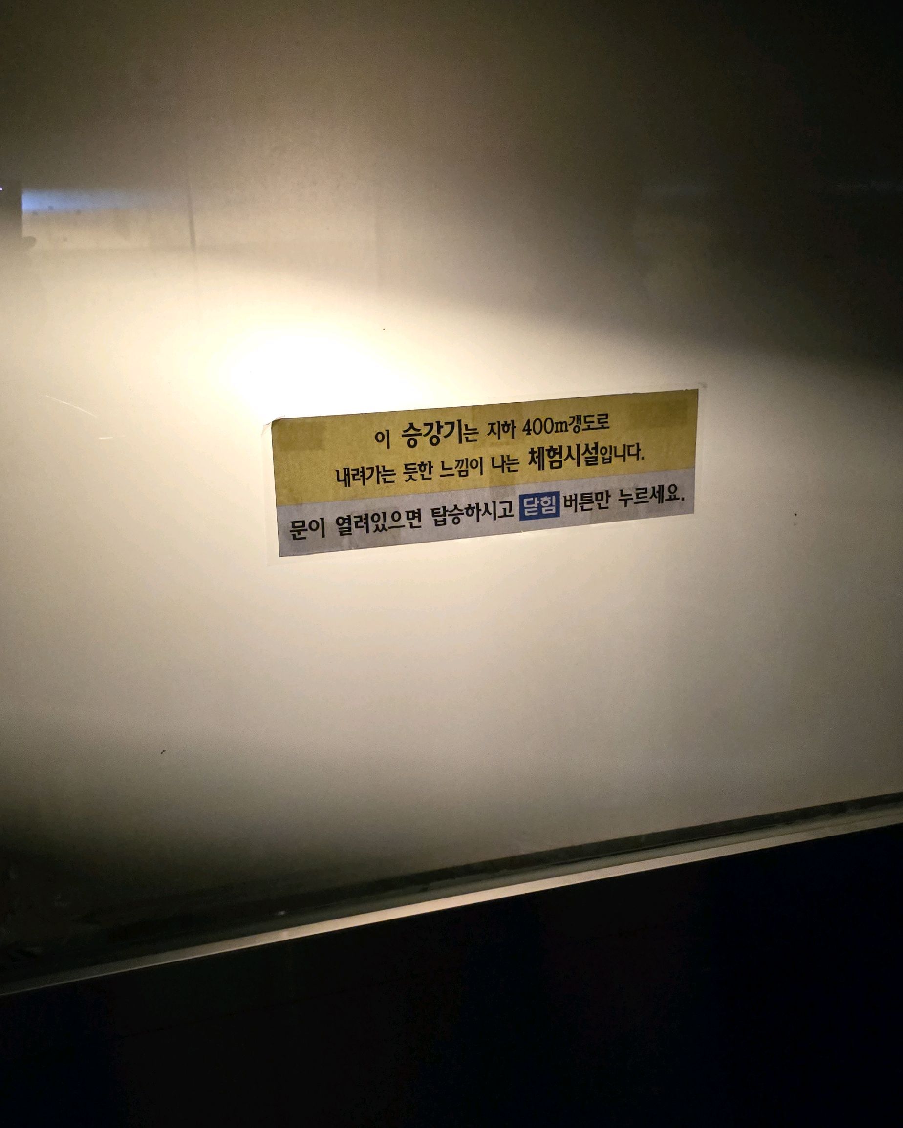 아이들이 좋아할것같아요->승강기(지하갱도내려가는느낌)->
