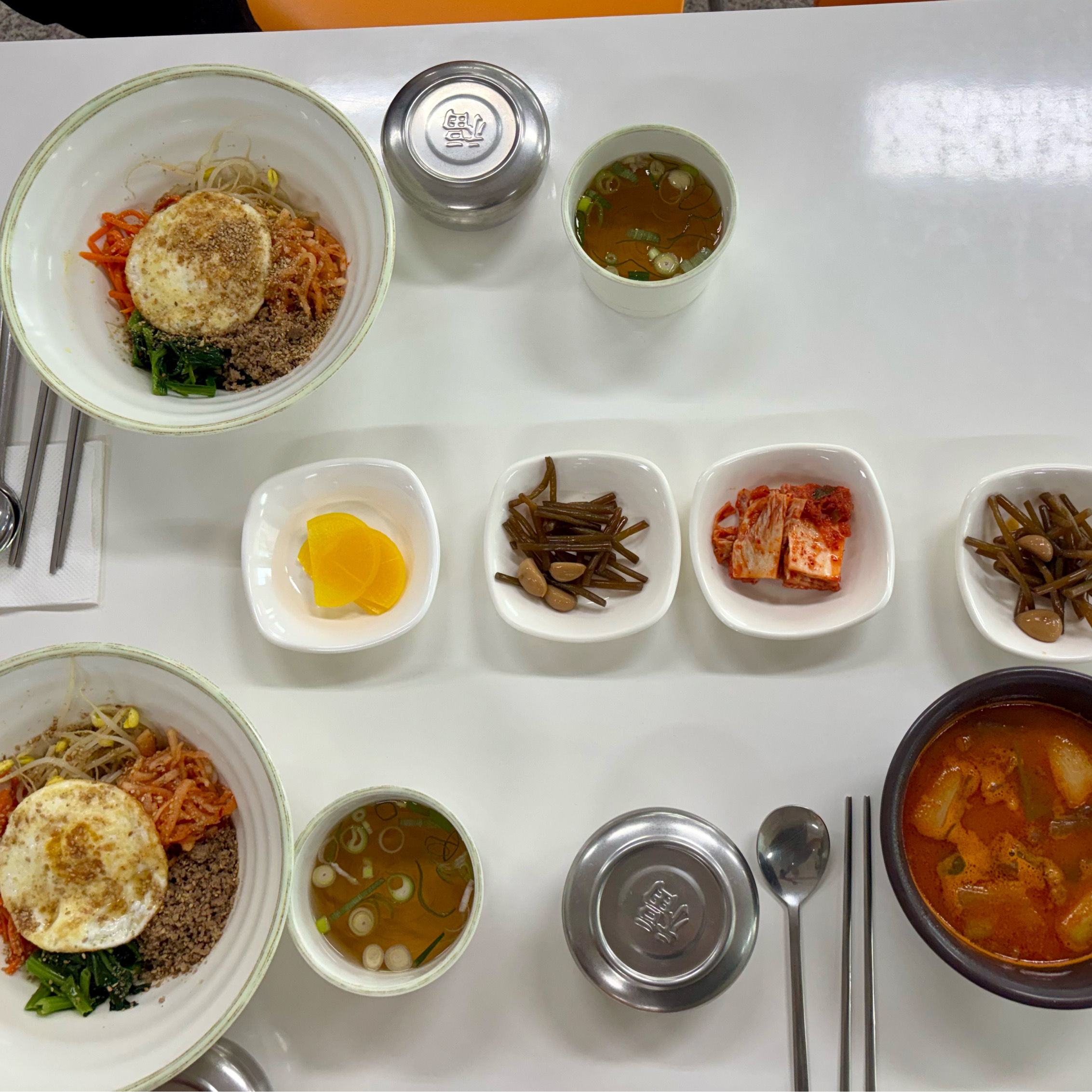 메뉴가 어린이, 어른 골고루 선택할 수 있게 구성됨. 난 육개장 시켰는데 국물이 찐하고 맛있음. 비빔밥도 깔끔하고 맛있어요.