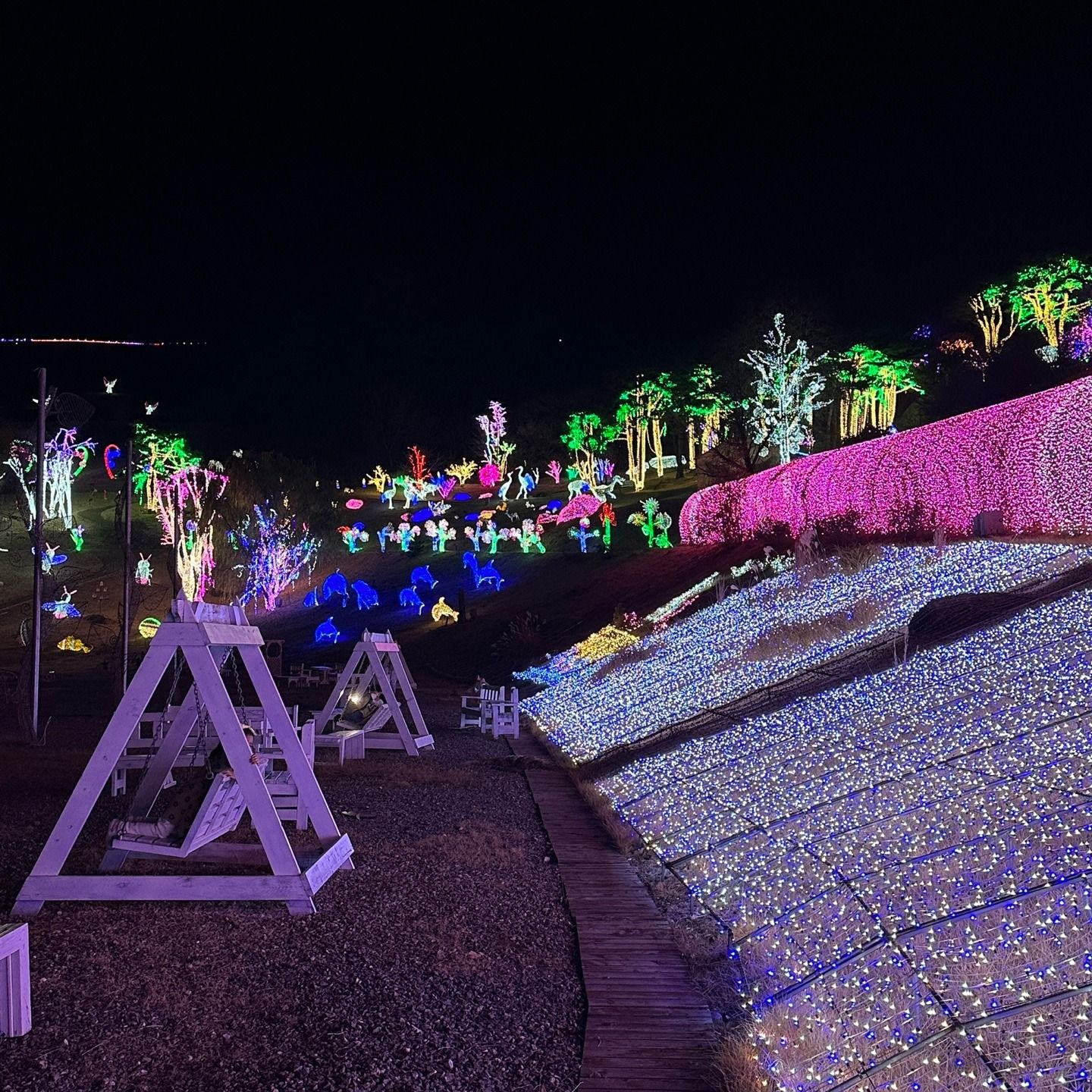밤에 불빛 축제도 하고 산책하기 너무 좋네요 리뷰쓰면 바베큐도 무료로 제공해주네요 ㅎ최고의 글램핑이였습니다. 주차시설과 캠핑장이 너무 먼 것이 불편했지만 미리 준비만 하시면 괜찮을듯