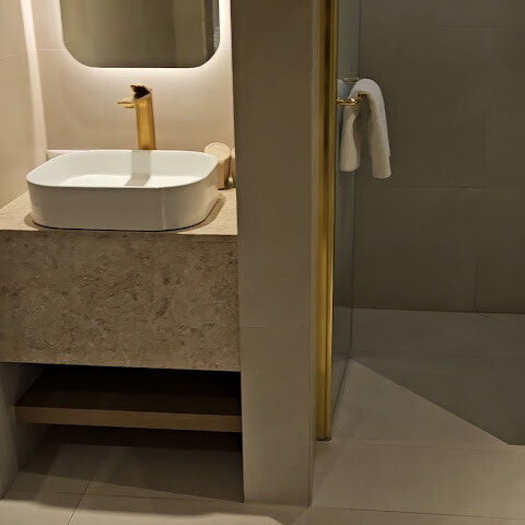 이 객실에는 욕조가 없었고, 세면대에는 옷걸이와 옷걸이용 고리가 없어서 아쉬웠습니다.