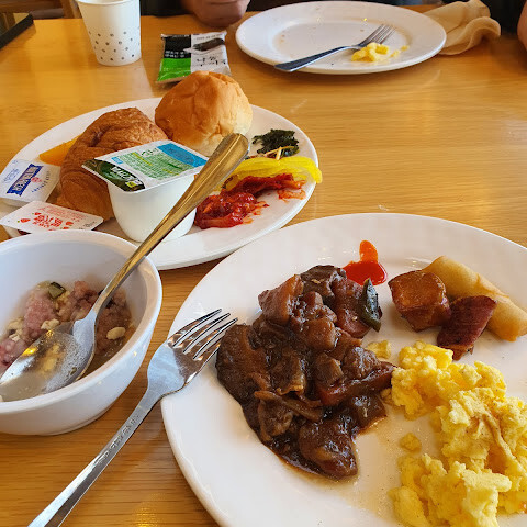 조식은 종류가 많진않지만 배채우기엔 충분한 식사였어요. 테이블수가 작아서 타인과 같이 사용, 바로바로 채워지진 않았지만 먹을만 했담니다.