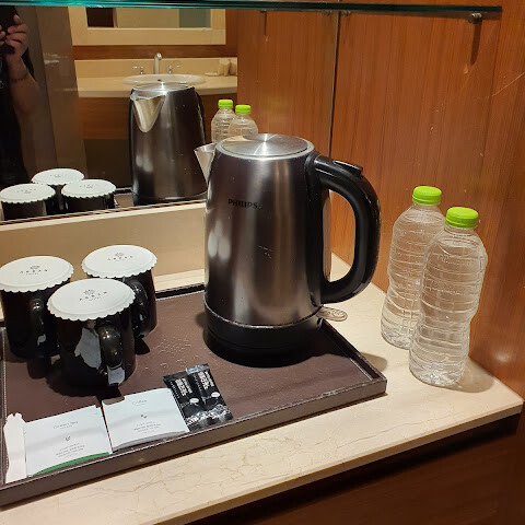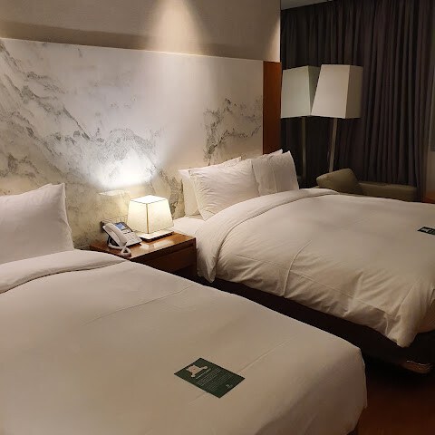 7층 트윈룸에 묵었습니다. 방은 넓었고, 생수, 수건, 티백, 커피백, 세면도구(샤워젤, 치약, 빗은 제공되지만 개인 용품은 챙겨야 함)가 구비되어 있었습니다.