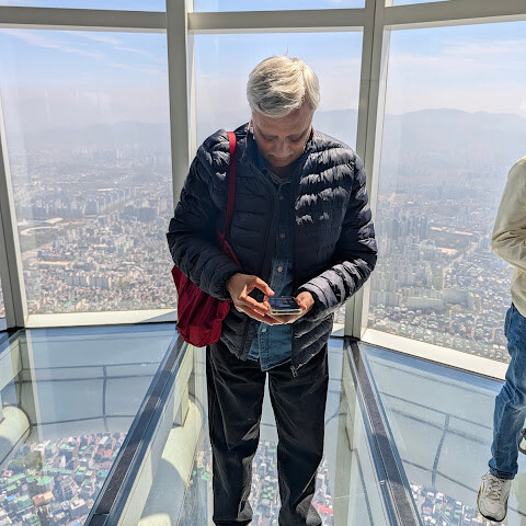 서울에서 가장 높은 타워입니다. 첨탑 높이는 555m에 달합니다. 497m 높이의 최상층까지 올라갔는데, 엘리베이터 속도가 정말 빨라요. 꼭대기에 오르면 탁 트인 전망이 펼쳐져요. 서울과 주변 지역을 360도 파노라마로 감상할 수 있어요. 유리 바닥과 맛있는 음식을 즐길 수 있는 카페도 정말 마음에 들었어요. 정말 최고예요. 강력 추천합니다.
