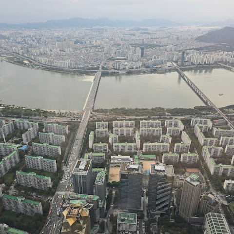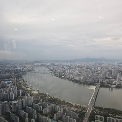 롯데월드타워 서울스카이는 꼭 방문해야 할 곳입니다! 꼭대기에서 바라보는 풍경은 숨 막힐 듯 아름다워요. 약간 흐린 날에도 수 킬로미터에 걸쳐 펼쳐지는 서울의 파노라마 전망을 감상할 수 있습니다. 사실, 약간 흐린 날에 가면 오히려 더 유리할 수 있는데, 인파를 피할 수 있고 시야도 여전히 좋기 때문입니다.