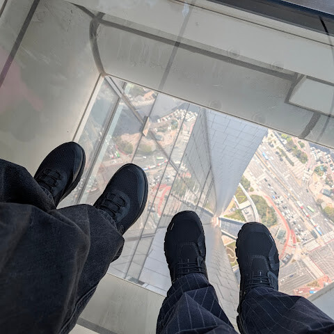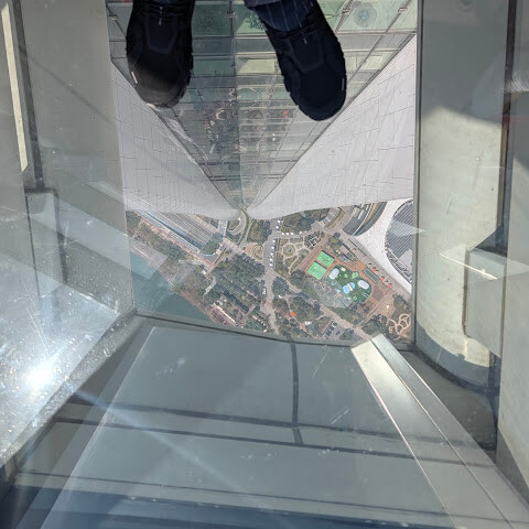 486미터 높이(121층)의 유리 바닥 위를 걷는 건 정말 해볼 만한 경험이었지만, 주변에는 그 시간을 보내는 동안 차분해 보이는 사람이 단 한 명도 보이지 않았습니다.