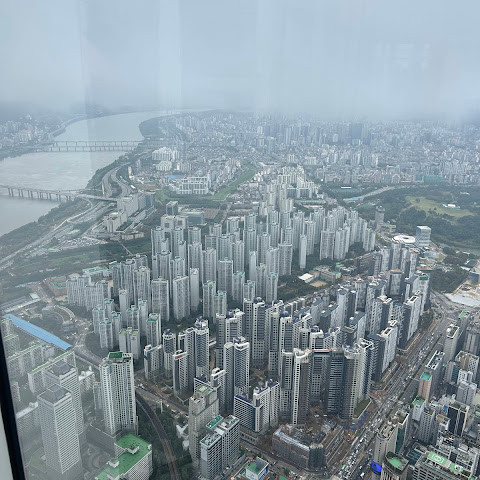 롯데월드타워 서울스카이는 꼭 방문해야 할 곳입니다! 꼭대기에서 바라보는 풍경은 숨 막힐 듯 아름다워요. 약간 흐린 날에도 수 킬로미터에 걸쳐 펼쳐지는 서울의 파노라마 전망을 감상할 수 있습니다. 사실, 약간 흐린 날에 가면 오히려 더 유리할 수 있는데, 인파를 피할 수 있고 시야도 여전히 좋기 때문입니다.